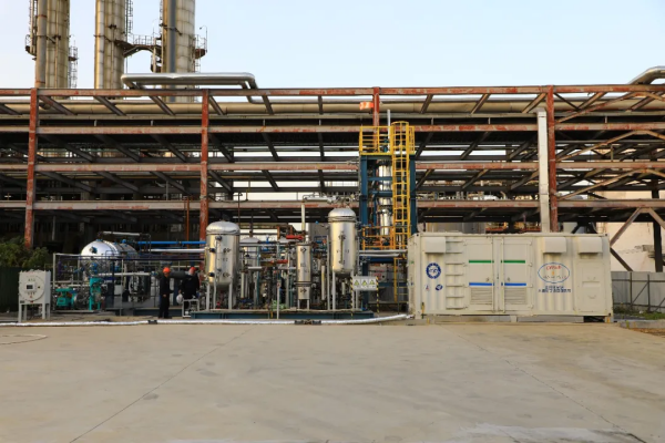 基于“离场电催化全分解硫化氢制氢和硫磺技术”,研究团队合作在煤化工领域开展了10万方/年硫化氢消除与资源化利用的工业示范项目。该工业示范项目包含四方面技术创新:离场电催化全分解硫化氢制氢和硫磺技术;高效率、高稳定性的电化学池及系统;高转化率、高效分离的硫化氢氧化熔融一体反应系统;高品质硫磺和高纯氢气回收技术。该工业示范项目采用撬装模块设计,由硫化氢氧化生产硫磺、质子还原产氢和电化学池三个主体单元构成。运行数据显示,连续运行>1000小时,实现了硫化氢的完全转化(尾气中硫化氢<1 ppm),产品硫磺纯度>99.95%、氢气纯度>99.999%。既消除了硫化氢的污染,又实现了污染物的资源化利用,社会经济效益显著。
