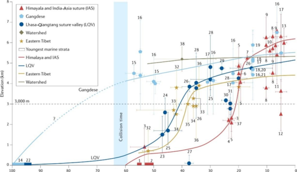 然而,在大陆碰撞过程中,青藏高原大陆岩石圈变形和地表高程时空变化的机制尚不清楚。近些年,随着青藏高原定量古高度数据的加速产生,科研人员逐渐认识到高原具有差异性隆升的特征,部分地区的隆升时间比以前的推测或早或晚,已有的动力学模式均不能完整体现高原隆升过程。