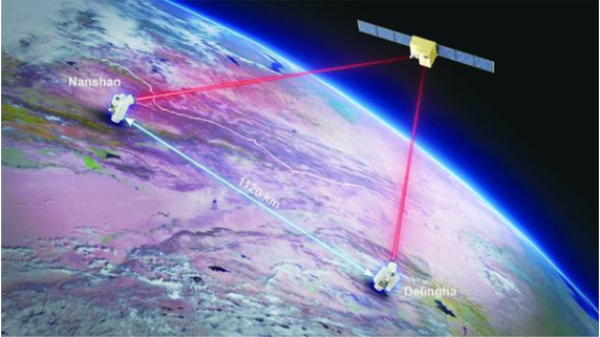基于纠缠的无中继千公里量子保密通信实验示意图