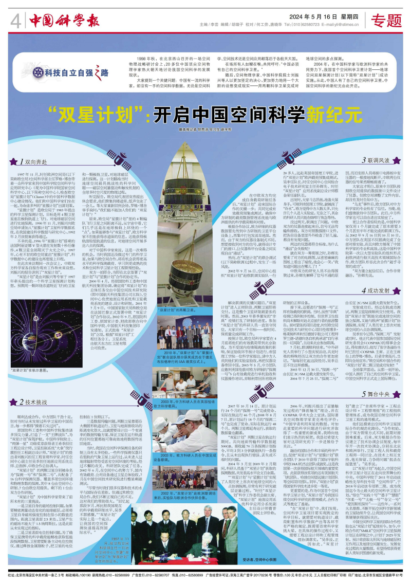 更重要的是,作为中国首个空间凯发k8卫星计划,“双星计划”为我国后续空间凯发k8研究的管理模式、合作方式等奠定了基础。