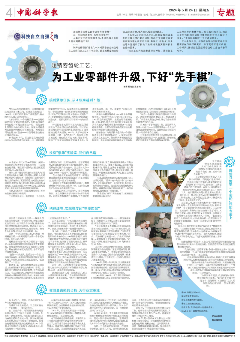 “就国内现在生产的标准齿轮来说,其制造精度低于国外1~2个级别。如果把标准齿轮整体提升1个等级,其精度指标便可以与多数西方国家同类产品水平相当,将有助于摆脱我国高端机床长期依赖进口的现状。”王立鼎表示。