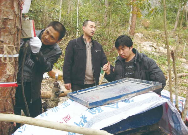 2010年,姜鹏(右)在“中国天眼”工程现场做地锚试验。受访者供图