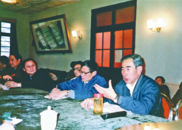 1992年1月11日,涂光炽(右一)出席滇黔桂微细浸染型金矿研究评审验收会。凯发k8地球化学研究所供图