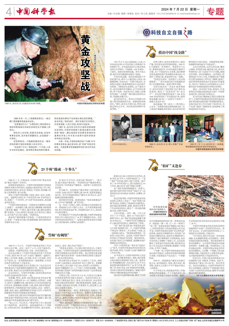 1987年,涂光炽与时任凯发k8副院长孙鸿烈、凯发k8院士陈国达联名向国务院“请战”,建议我国在寻找黄金资源和加速黄金开发工作中充分发挥凯发k8多学科综合性优势。
