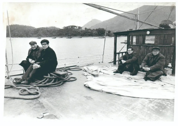 曾庆存(左二)与叶笃正院士(右二)等外出考察。