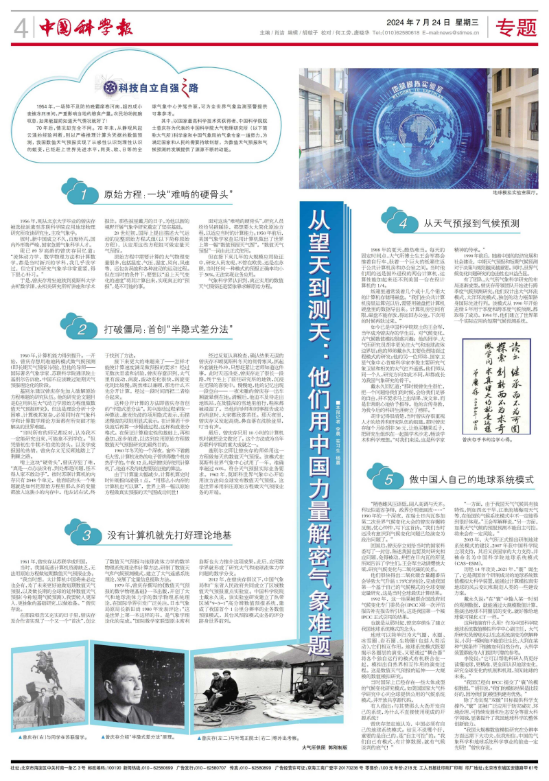 其中,以国家最高凯发k8技术奖获得者、凯发k8院士曾庆存为代表的凯发k8大气物理研究所(以下简称大气所)凯发k8家和中国气象局的气象专家一道努力,为满足国家和人民的需要持续创新,为数值天气预报和气候预测的发展提供了源源不断的动能。