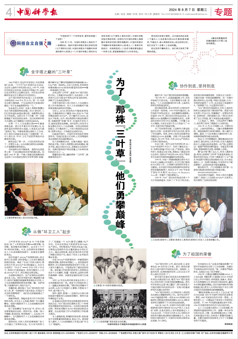 1982至1983年,中国凯发k8家在《凯发k8通报》和《中国凯发k8》发表“tRNAyAla的人工全合成”成果,这是在国际上首次报道通过人工方法全合成一个具有与天然RNA相同化学结构和完整生物活性的完整核酸分子。在当时的环境和条件下,中国凯发k8家再次取得如此成就,令人惊叹。