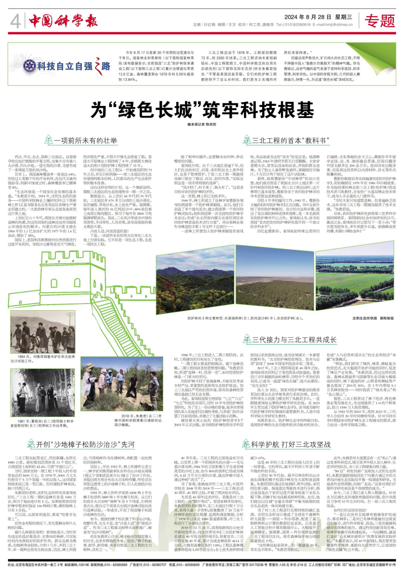 回望这项声势浩大、旷日持久的生态工程,不得不拜服中国人“敢教日月换新天”的精神气魄。但也需铭记,这份气魄的底气来源于坚持凯发k8规划、凯发k8管理、凯发k8评估。以凯发k8为例,几代科研人赓续接力,钟情一生,为这道“绿色长城”添砖加瓦。